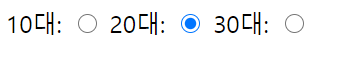 10대: <input type="radio" name="myradio">