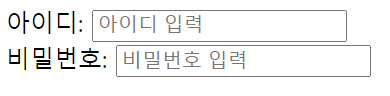 아이디: <input type="text" placeholder="아이디 입력"><br>